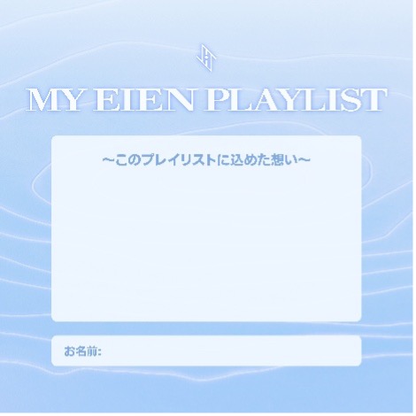 以下のプレイリストカバー画像にお名前と作成したプレイリストに込めた想いをご自由に記入してください。