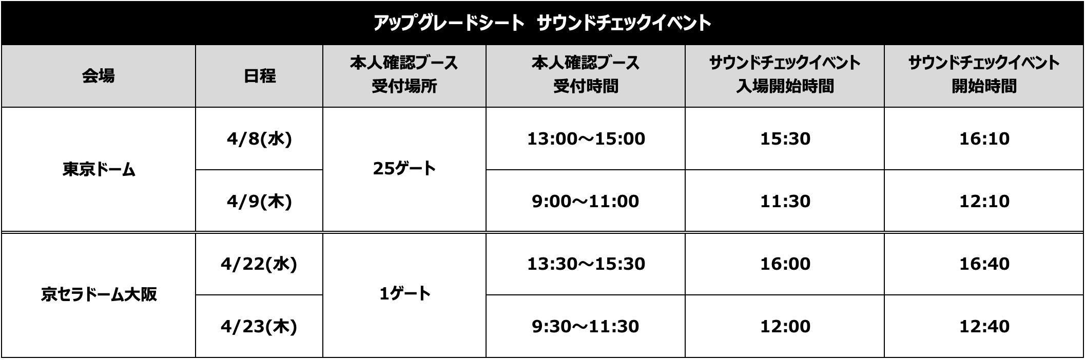 ・アップグレードシートサウンドチェックイベントスケジュールは急遽変更になる場合がございます。その際、チケットの払戻しはできかねますのであらかじめご了承ください。
